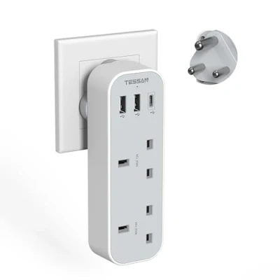 South Africa Plug Adapter: This Type M power apdapter is compatible in most of grounded type M countries, for South African, Namibia, Swaziland (Eswatini), Lesotho, Bhutan, Botswana, India, Kuwait, Macau, Malaysia, Mozambique, Nepal, Pakistan, Singapore, Sri Lanka; ideal for traveler, business man and foreign student South Africa USB Adapter Plug: Dual USB A ports features 2.4A, the USB C port features 3A; 2 types of USB ports can detect charged devices and deliver optimal charging speed, giving you more charging options; idea for USB devices like cell phone, tablet, earphone, etc 5 In 1 Travel Plug Adapter: This type M adapter for South Africa can turn 1 Type D socket into 2 UK outlets and 3 USB ports, allowing you to charge 5 devices simultaneously, compatible with laptops, camera and more devices Compact Size: This double outlet plug has a lightweight design, which charges 5 devices at the same time; With the compact design and simple operation; It is suitable for outgoing, traveling and business trip, etc NOTE: This travel plug South Africa is not a voltage converter; Please confirm your devices compatible with dual voltage or worldwide voltage devices with input voltage range from 100to 250V, Manufacturer: Zhuhai Tessan Power Technology Co., Ltd.