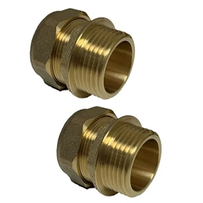 UKDD® 28mm Compression by 1" BSP Brass Male Iron Coupler (Pair), x Straight Adaptors
