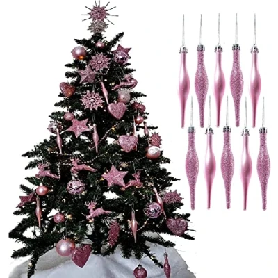 UKDeals Direct BLUSH PINK COLLECTION CHRISTMAS DROPLET BAUBLES TREE DECORATIONS GLITTER MATT ICICLES (Pack of 10 Droplets 120mm), 22 x 16 2cm