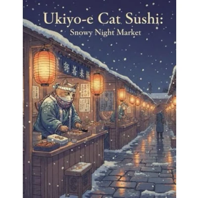 Ukiyo e Cat Sushi: Snowy Night Market: A Cozy Style Coloring Book for Adults