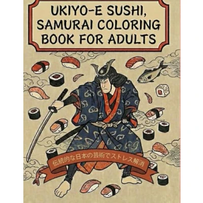 Ukiyo e sushi,Samurai Coloring Book for Adults: Traditional Japanese Art Stress Relief: / Woodblock Print Relief Mindfulness