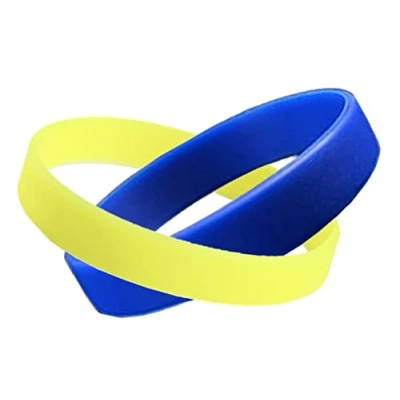 Official Komonee Silicone Ukraine Coloured Wristbands. You will receive 1 Blue and 1 Yellow wristband together to help show your support. These rubber bracelets are also very popular for team games such as sports including football, basketball and rugby. These are unisex and comfortable. Choose your desired quantity. These wrist bands are popular with students at schools, clubs and charities and are often used to bring people together. These wristbands are completely waterproof, your bands never need to be removed even when you shower. Made from stong and flexible silicone material. These popular fashion decorations are great for music events, festivals, concerts but can also be good gifts, souvenirs, promotional materials for many types of businesses. Match with jeans or an evening dress, teens love to collect these so they make a great birthday, christmas or graduation present.. One size fits most people boys girls men women adults children due to it's flexible build material. Approximate Size: 18.5cm circumference 1cm Wide & 2mm Thick