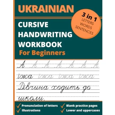 Ukrainian Cursive Handwriting Workbook for Beginners: 3 in 1 Letters, Words & Sentences Tracing Book Kids Adults, Learn Practice Writing Alphabet