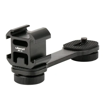 ULANZI PT 3 Triple Cold Shoe Mount Adapter Aluminium for Gimbal (DJI Osmo Mobile 2/3, Zhiyun, Feiyutech), Camera and Smartphone Vlog Video Microphone Extension Bar,Black