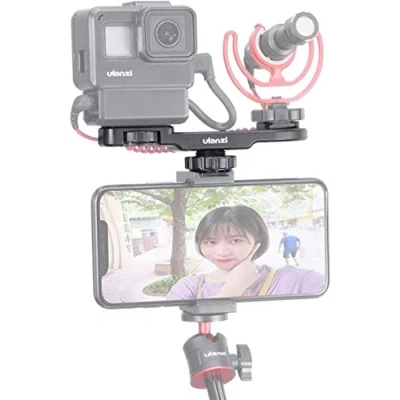ULANZI PT 8 Vlog Cold Shoe Extension Adapter Bracket with and 1/4" Tripod Mount for Additional Vlogging Accessories, Black