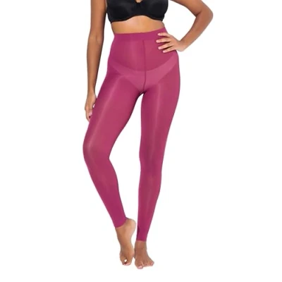 Ulla Popken Ladies Plus Size 60 Denier Flat Seam Tights Leggings, berry, 56 58