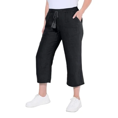 Ulla Popken Women's 7/8 Linen Pants, Black, 32 34