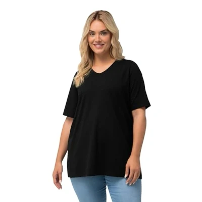 Ulla Popken Women's A line, V Neck, Half Sleeves T Shirt, Black Beauty, 20 22