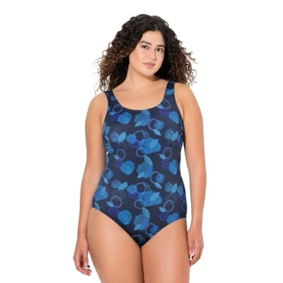 Ulla Popken Women's Badeanzug Alice, Softline, Blattfeuerwerk One Piece Swimsuit, Navy, 46 48