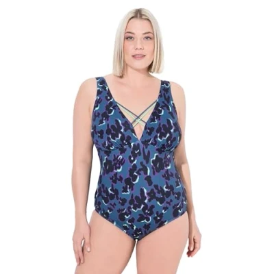 Ulla Popken Women's Badeanzug Laura, Zierbänder, Flecken One Piece Swimsuit, Dark Petrol, 22