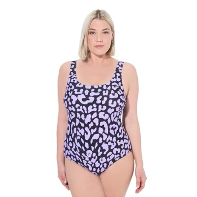 Ulla Popken Women's Badeanzug, Leomuster, Ohne Softcups, Rundhals One Piece Swimsuit, Light Purple, 54 56