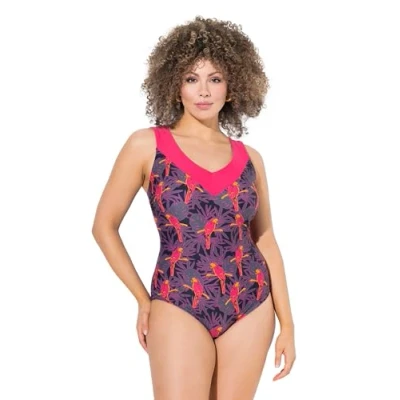 Ulla Popken Women's Badeanzug, Selma, Papageigetuschel One Piece Swimsuit, Black, 24