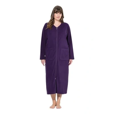 Ulla Popken Women's Bademantel, 2 Wege Zipper, Frottee, Langarm Bathrobes, Aubergine, 52 54