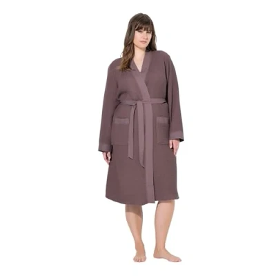 Ulla Popken Women's Bademantel, Schalkragen, Gürtel, Waffelpiqué, Langarm Bathrobes, Earth, 58 60