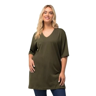 Ulla Popken Women's Basic v Shirt T, Forest Green, 54 56