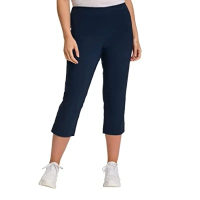 Ulla Popken Women's Bengalin Mid Calf Pants Trousers, Navy, 45W / 32L
