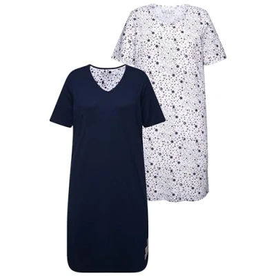 Ulla Popken Women's Bigshirts, 2er Pack, Rundhals /V Ausschnitt, Halbarm Night Shirt, Midnight Blue, 16 UK/18 UK