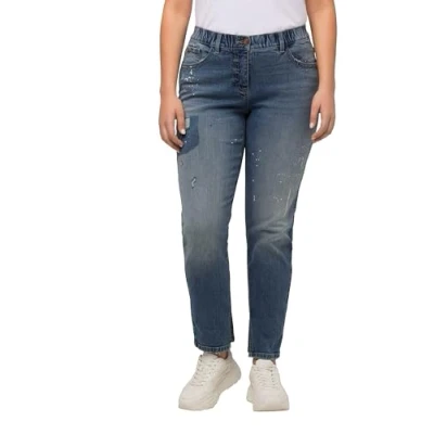 Ulla Popken Women's Boyfriend Jeans, Destroy Effekte, weites Bein, Stretch, Blue Denim, 24