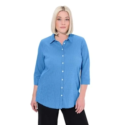 Ulla Popken Women's Bubble Bluse, Streifen, Hemdkragen, 3/4 arm Shirt Blouse, Cobalt Blue, 32 34 Plus