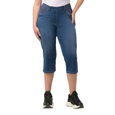 Ulla Popken Women's Capri Jeans with Elastic Waistband, Sienna, Blue, 22