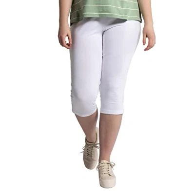 Ulla Popken Women's Capri Leggings, Seitliches Spitzenband, Biobaumwolle, Snow White, 32W x 32L