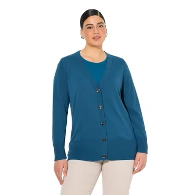 Ulla Popken Women's Cardigan, V Neck, Button Placket, fine Knit Sweater, Blue Green, 24 26