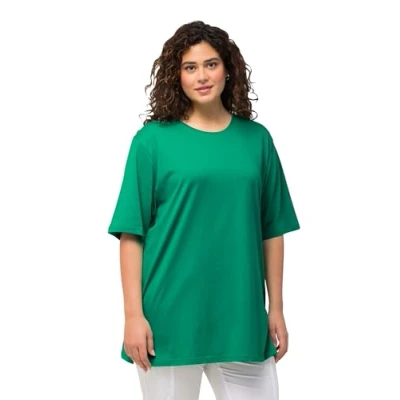Ulla Popken Women's Crew Neck Relaxed Half Sleeve T Shirt, Emerald, 42 44