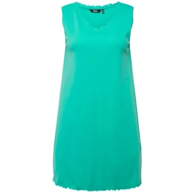 Ulla Popken Women's Dress, Wave Edges, A line, fine Rib, Organic Cotton 793167, Green, 24 26
