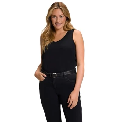 Ulla Popken Women's Feminines Top mit V Neck T Shirt, Snow White,...