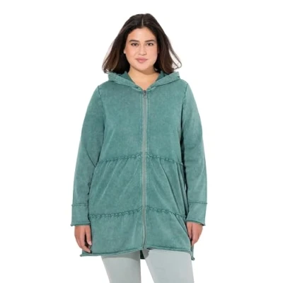 Ulla Popken Women's Long hoodiejacke, Vintage Look, A Linie, Kapuze Sweatshirt, Green, 50 52
