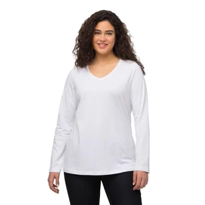 Ulla Popken Women's Long Sleeved V Neck Shirt, Snow White, 24 UK/26 UK