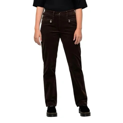 Ulla Popken Women's Mony Corduroy Trousers, Partially Elastic Waistband Pants, Dark Brown, 54 Große Größen Tall