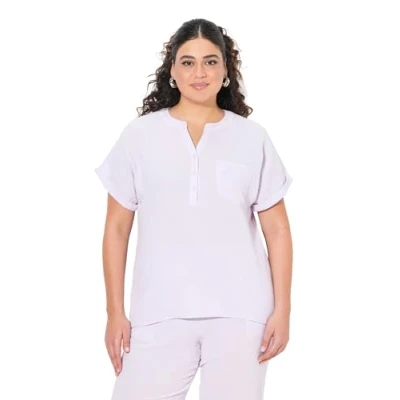 Ulla Popken Women's Musselin Bluse, Oversized, Tunika Ausschnitt, Halbarm Muslin Blouse, Lavender, 28 UK/30 UK