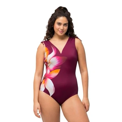 Ulla Popken Women's Petra 826508 Ruffled Shoulder Flower Swimsuit One Piece, red, 26