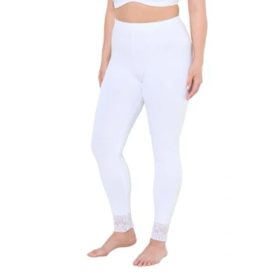 Ulla Popken Women's Plus Size Leggings Lace Band, Snow White, 40W x 32L