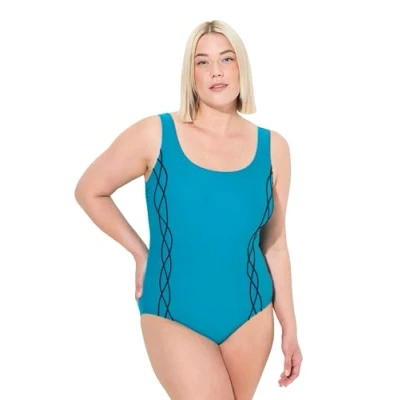 Ulla Popken Women's Plus Size Swimsuit Piping Without Softcups Underbust Band, Dark Turquoise, 30