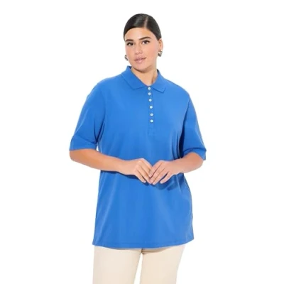 Ulla Popken Women's Poloshirt, Piqué, Polokragen, SAMT Knopfleiste, Halbarm T Shirts, Plum Blue, 20 UK/22 UK