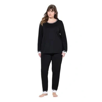 Ulla Popken Women's Pyjama, Lace Pajama Set, Schwarz, 58/60