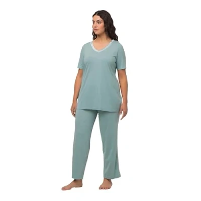 Ulla Popken Women's Pyjama, Satin Trim Pajama Set, Minze, 20 22