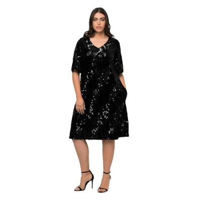 Ulla Popken Women's Samtkleid mit Pailetten Dresses, Black, 16/18
