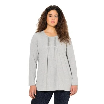 Ulla Popken Women's Shirt, Falten, Perlen, A Linie, Rundhals, Langarm T, Light Grey mélange, 24 UK/26 UK