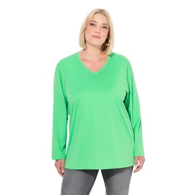 Ulla Popken Women's Shirt, V Ausschnitt, Relaxed, Langarm Tunic, Green, 32 UK/34 UK