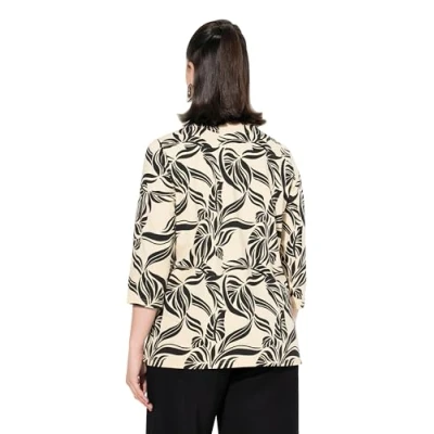 Ulla Popken Women's Shirt with V Neck and Leaf Print 830408 T, Black, 20 UK/22 UK