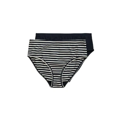 1 x striped, 1 x plain Proven comfortable fit Butt covering Mid-rise leg cut Sustainable organic cotton