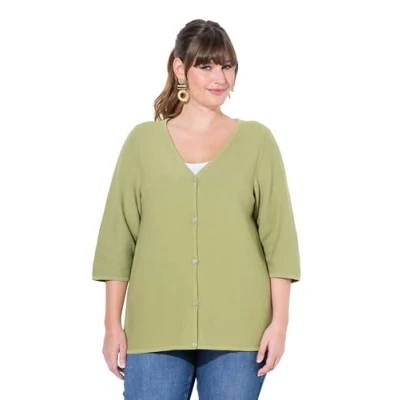 Ulla Popken Women's Strickjacke, V Ausschnitt, 3/4 arm, Biobaumwolle Feminine Short Cardigan with Button Placket, Green (sage), 28/30/Große n