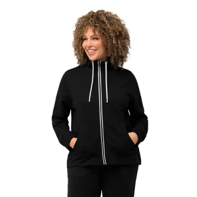 Ulla Popken Women's Sweatshirt, weiter Stehkragen, Kordel, Raglanärmel Sweat Jacket, Schwarz (Schwarz...