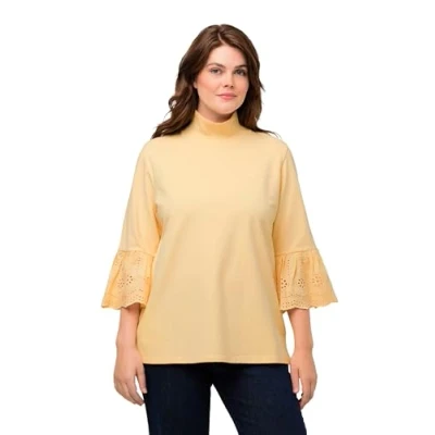 Ulla Popken Women's Sweatshirt with Embroidered Sleeves, Light Yellow, 24 26