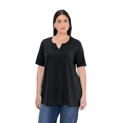 Ulla Popken Women's T Shirt, A line, Tunic Neck, Half Sleeves, Black Beauty, 36 38