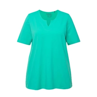 Ulla Popken Women's T Shirt, A line, Tunic Neckline, Half Sleeves, 807259, Turquoise Green, 32 UK/34 UK