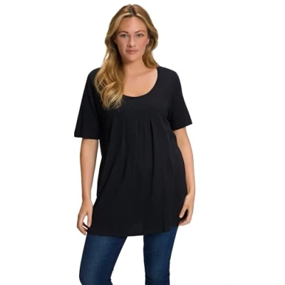 Ulla Popken Women's T Shirt, Decorative Pleats, A line, Round Neck, Half...